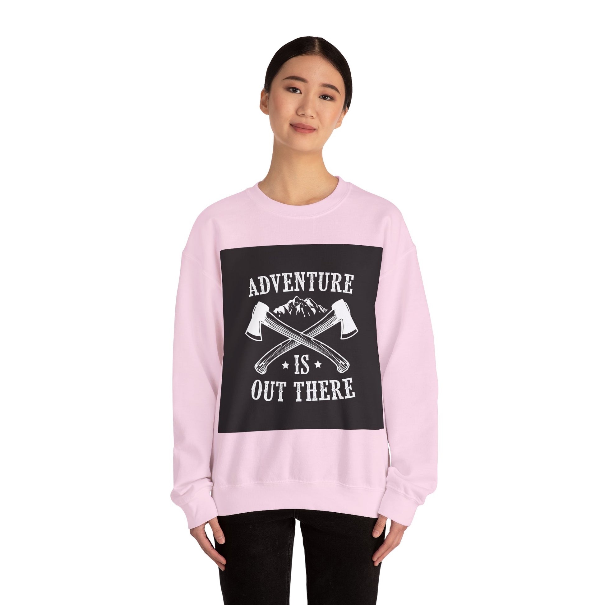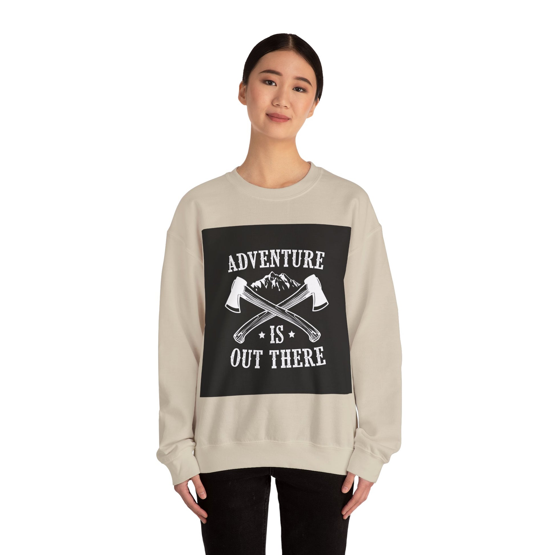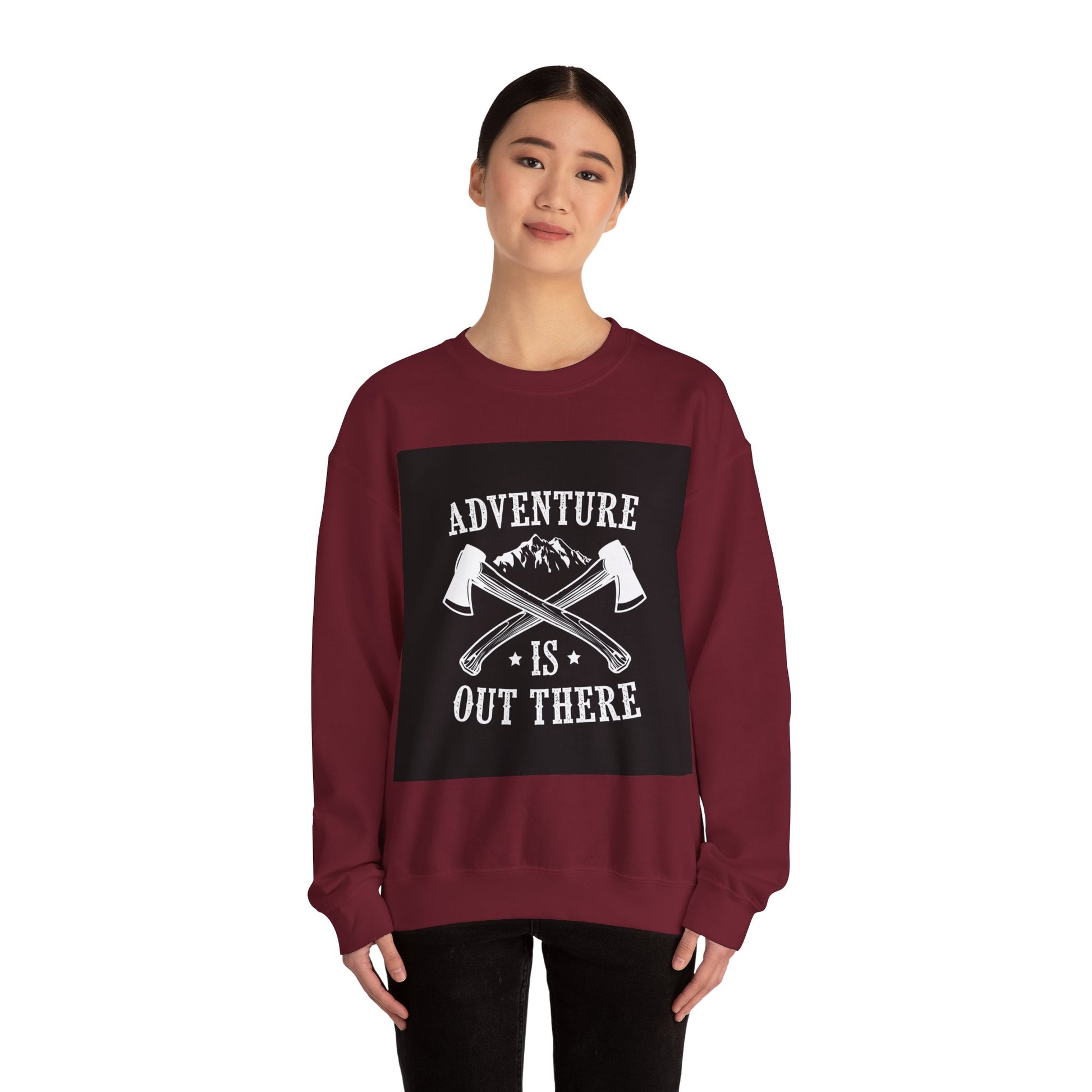 This cozy crewneck brings the call of the wild into everyday wear. A medium-heavy cotton-poly blend holds a bold, monochrome graphic—crossed axes, mountain silhouette and the phrase “Adventure Is Out There”—centered on the chest for a rugged, handcrafted look. The classic crew neckline and relaxed fit make it easy to layer over tees or under jackets for cooler mornings on the trail or slow coffee shop afternoons. Durable double-needle stitching and a tear-away label keep comfort long-lasting, while ethically sourced US cotton and OEKO-TEX certified dyes mean you can wear it with a clear conscience. Subtle embroidery options are available for a personalized touch at the chest or wrists.